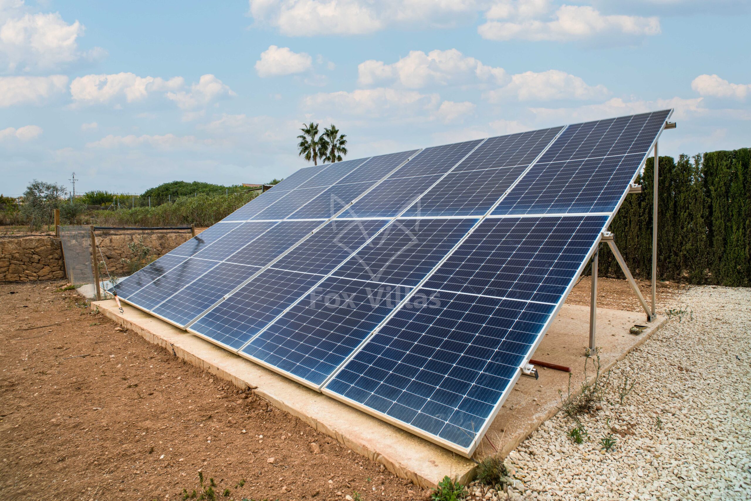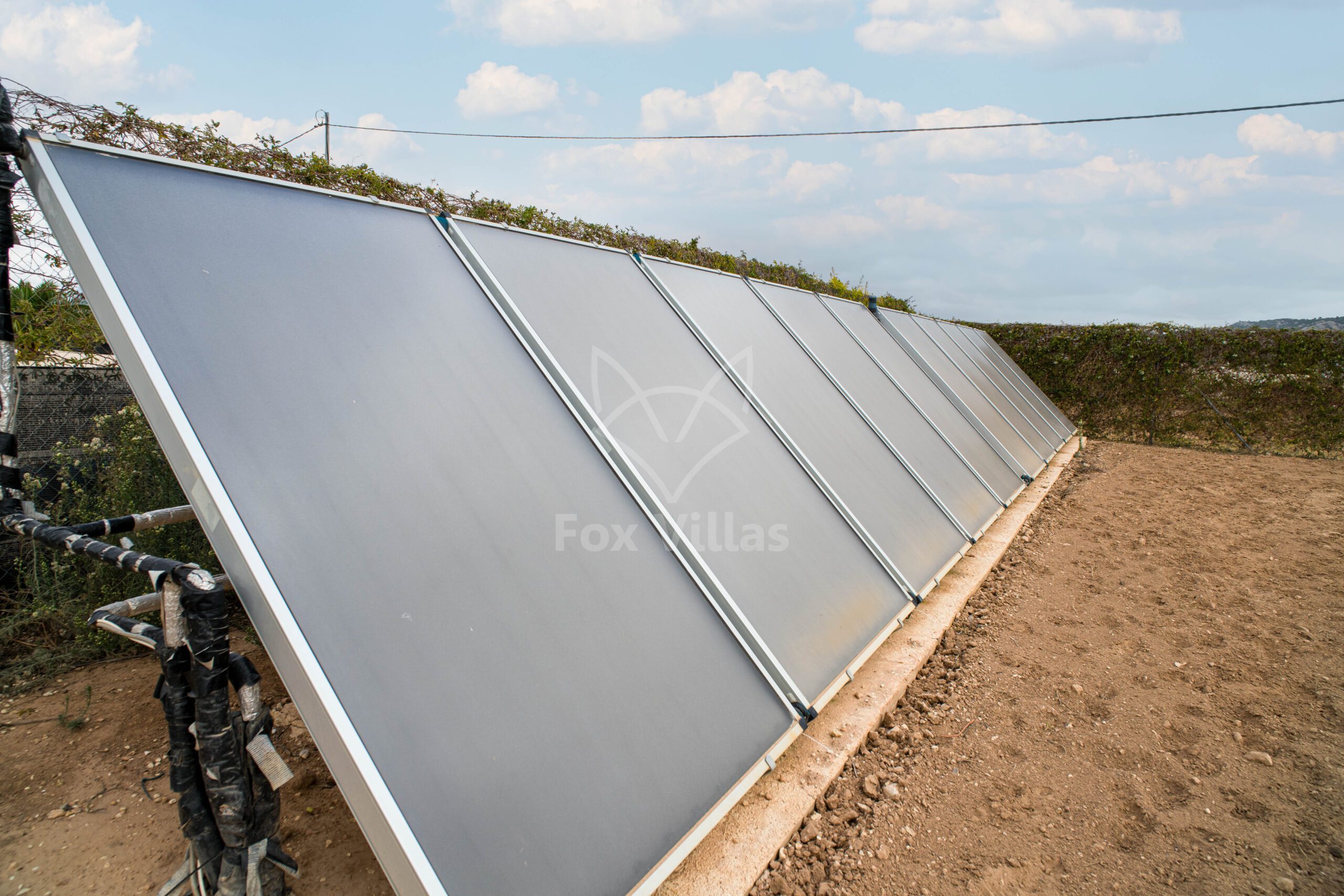 Qua voorzieningen is de woning volledig uitgerust: 12 zonnepanelen voor elektriciteit, 10 panelen voor warm water en zwembadverwarming, aansluiting op water, riool en elektriciteit, en snel internet.
