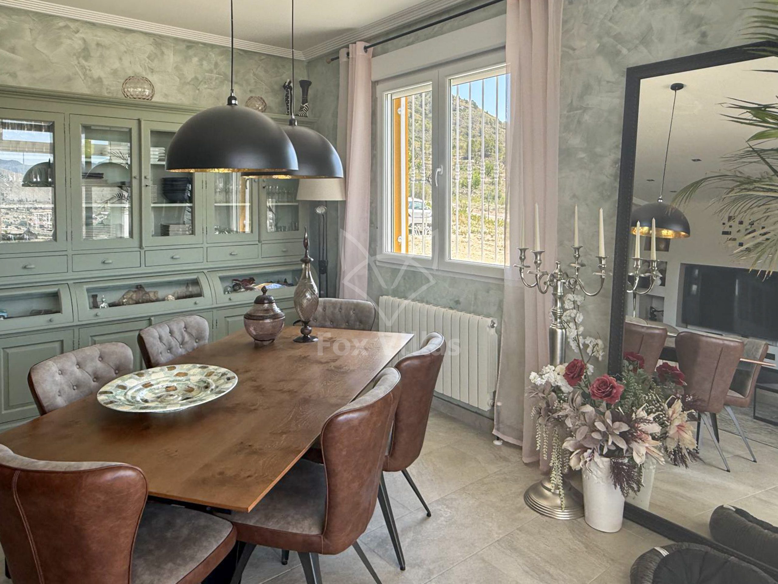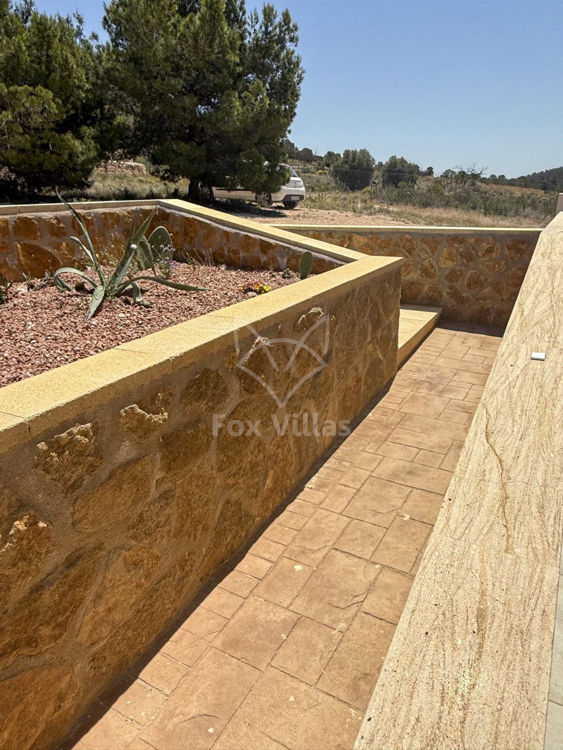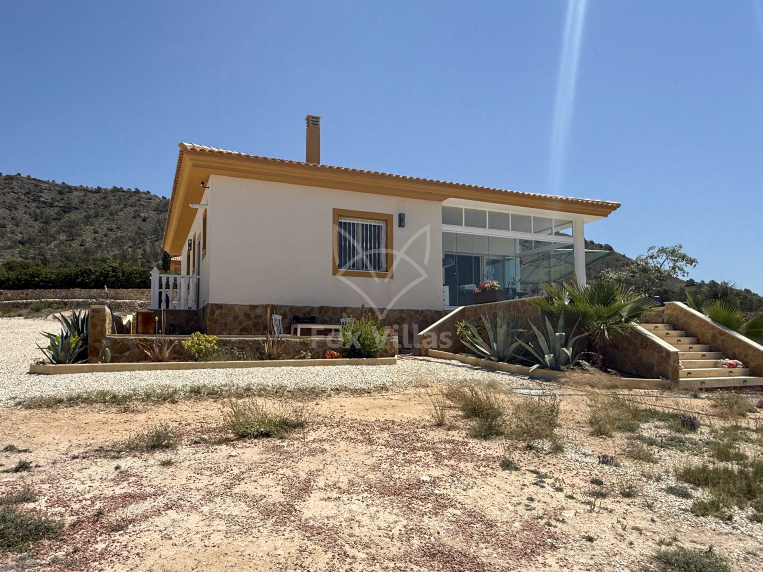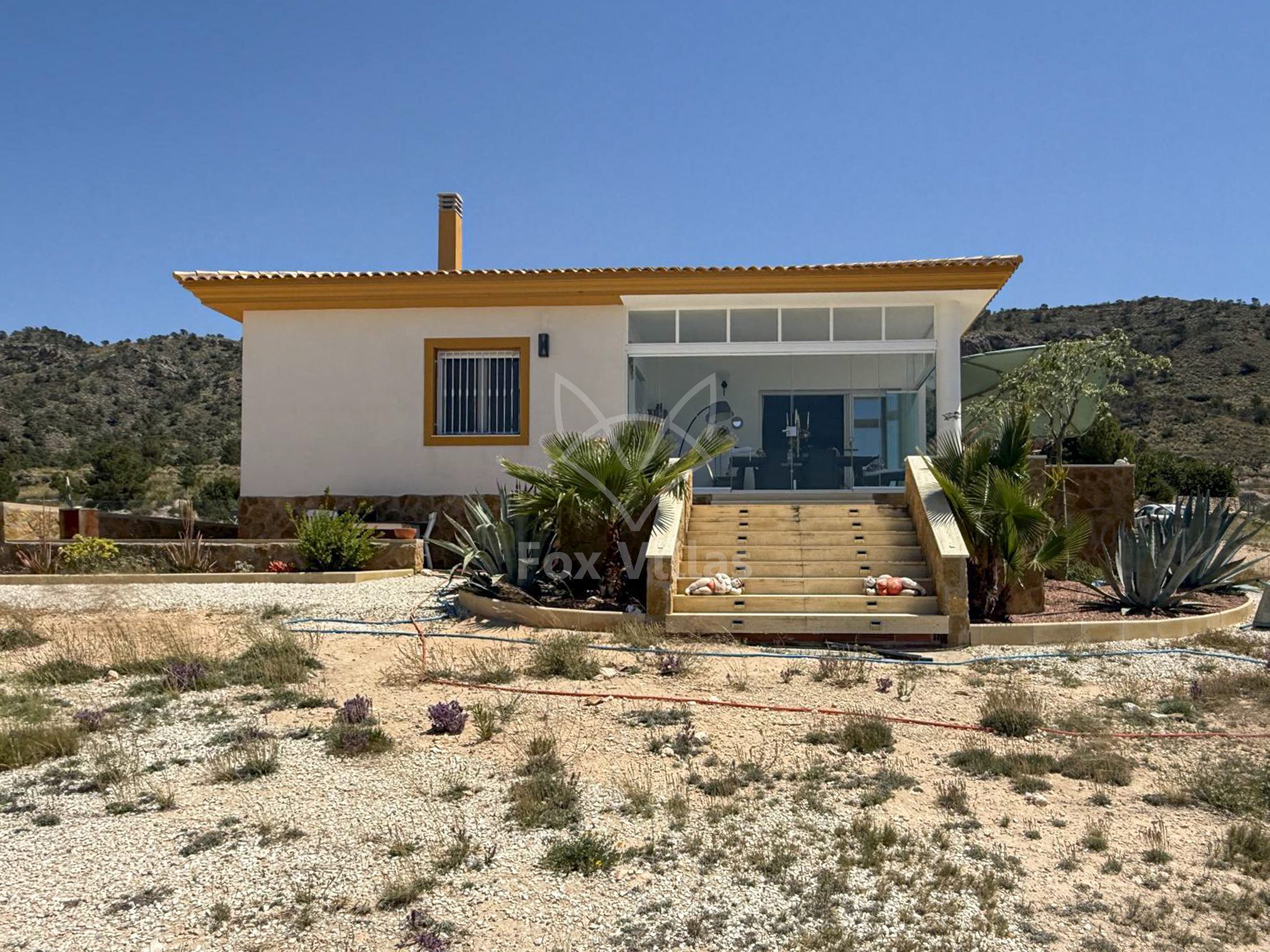 Deze prachtige villa uit 2019 ligt in een rustige, groene omgeving net buiten het dorp La Romana, administratief behorend tot Monóvar. Het huis combineert modern comfort met een adembenemend uitzicht over de omliggende natuur.