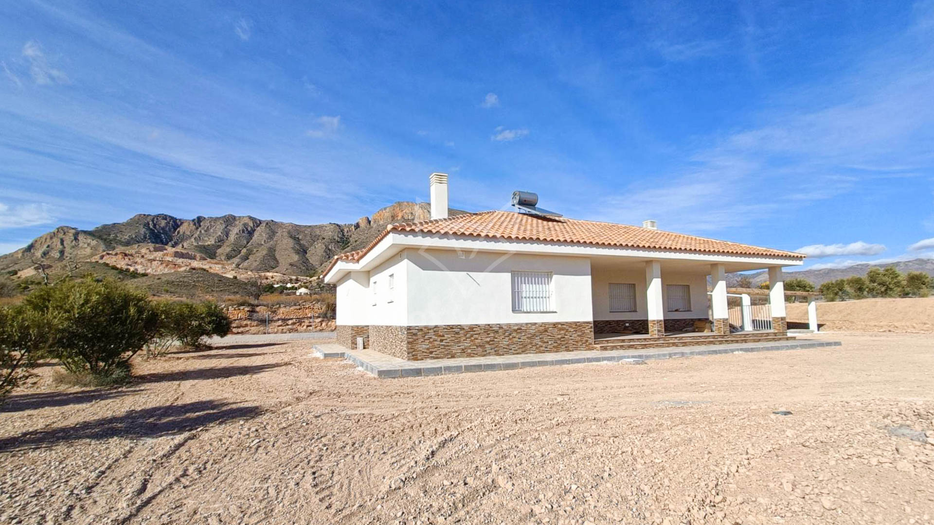 Moderne villa op 5 km van Pinoso met zoutwaterzwembad van 5 x 12 m (2024) en panoramisch uitzicht op de Sierra del Carche. De woning (129 m²) biedt 3 slaapkamers, 2 badkamers (1 en-suite), een lichte woonkamer met houtkachel, keuken met werkbladen aan beide zijden en een utility ruimte. Twee dakterrassen (30 m²), aansluiting op het waternet van Pinoso, zonnepanelen, 20 kWh batterij, 4 airco’s, elektrische poort, carport en meerdere bergingen.